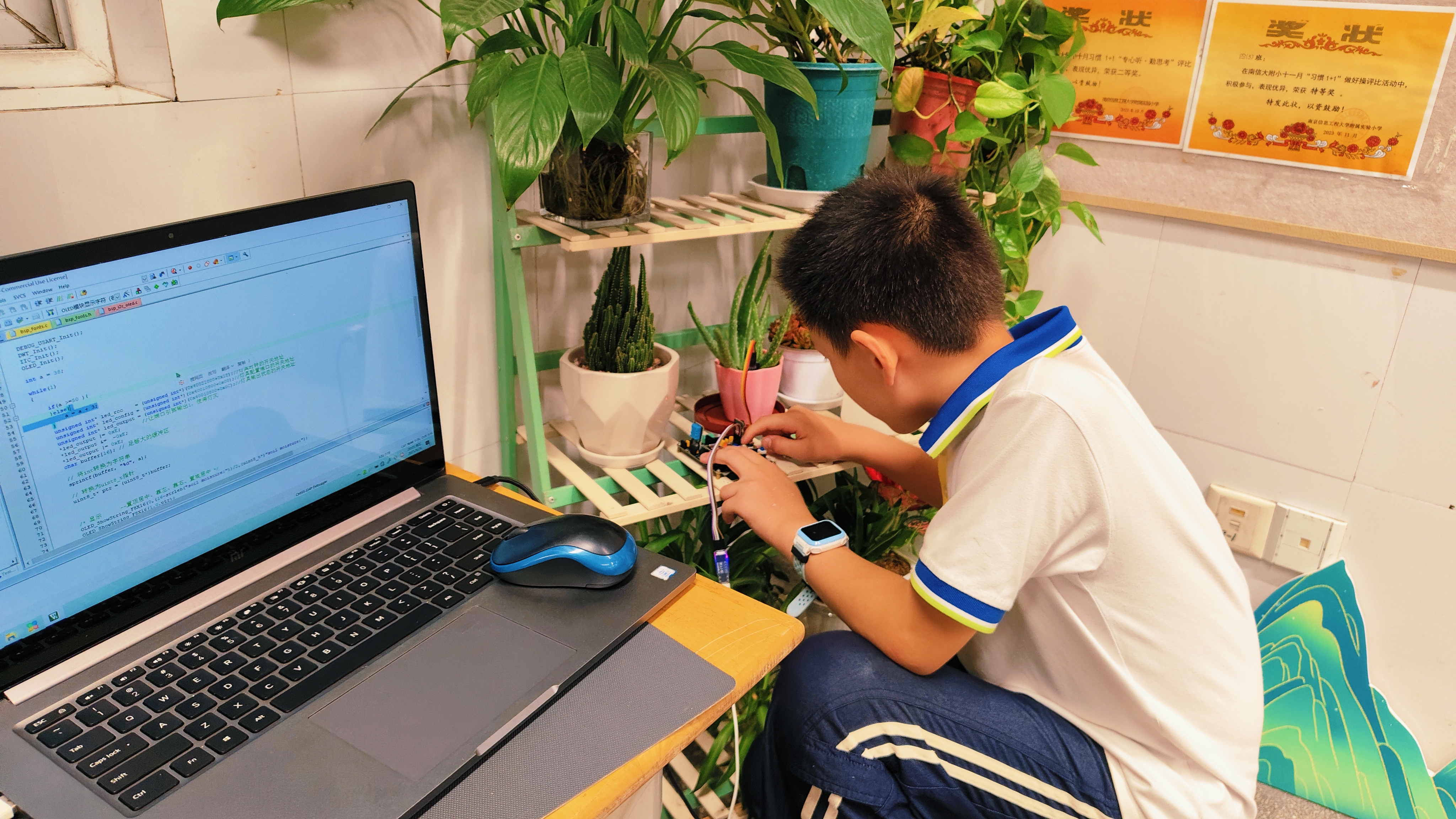 他品学兼优,连续 1-6 年级获评校级三好学生,斩获校级优秀少先队员等荣誉,四年级至六年级各科成绩均为优秀,综合素养名列前茅。更难得的是,他能将自身编程特长与集体需求结合,自主研发班级植物浇水提醒系统,助力班级获评区级 “最美教室”,用实际行动诠释了创新与奉献。